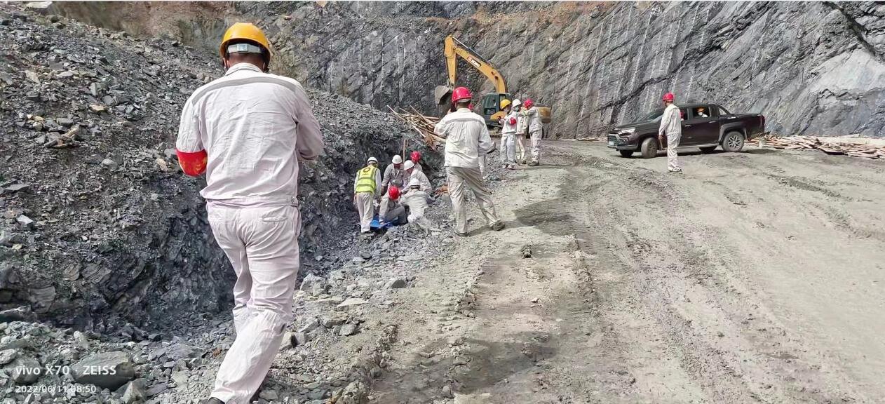 提高從業(yè)人員對礦山突發(fā)事故的應(yīng)急應(yīng)變能力,做到一旦發(fā)生突發(fā)事件,能夠迅速、高效、安全、有序地實施救援。以“安全第一、預(yù)防為主、自救為主、外援輔助、統(tǒng)一指揮”的方針為原則。德安項目部于202261日開展了邊坡塌方應(yīng)急演練。