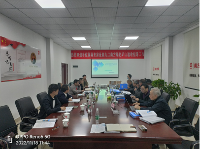 2022 年 11 18日,由九江市應(yīng)急管理局領(lǐng)導(dǎo)熊衛(wèi)強(qiáng),歐陽(yáng)市長(zhǎng)帶隊(duì),丁少輝,詹天衛(wèi),龔健,巢志眾,王偉五位專(zhuān)家組成專(zhuān)家組對(duì)彭澤項(xiàng)目部進(jìn)行綠色礦山現(xiàn)場(chǎng)驗(yàn)收檢查。